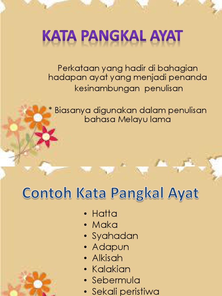 Tukarkan ayat bahasa melayu klasik. Kata pangkal ayat ialah perkataan yang hadir di bahagian hadapan ayat. Contoh Ayat Perkataan pangkal.